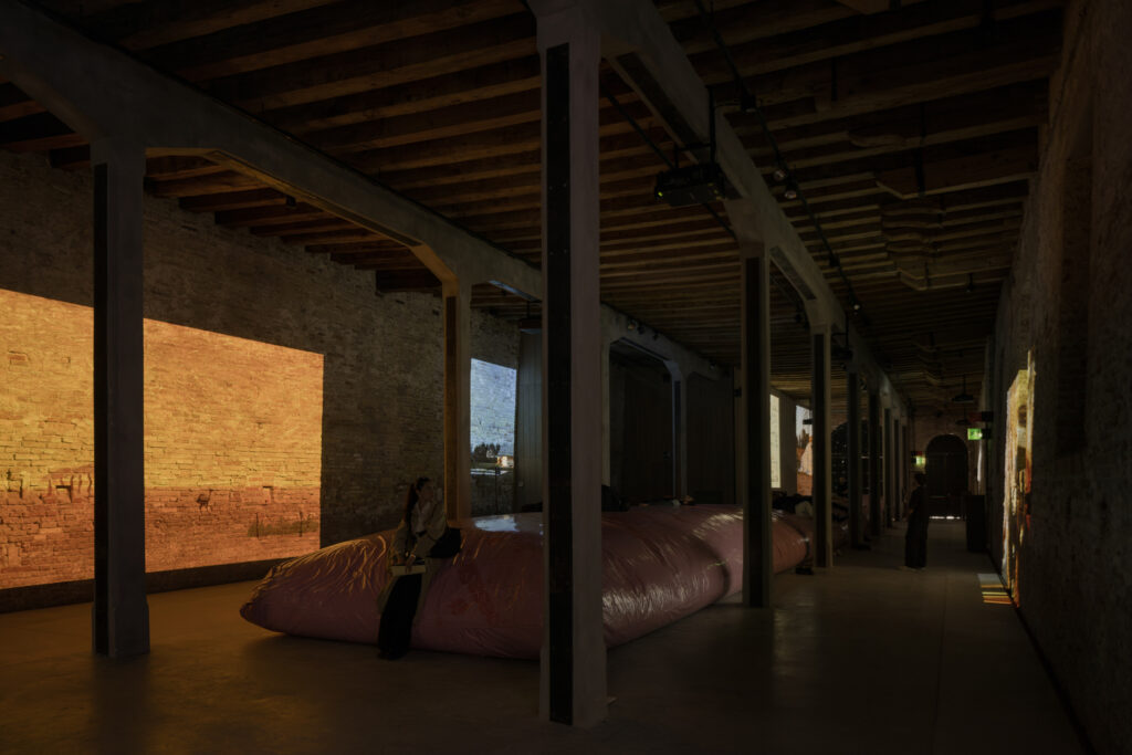 Desde esa siesta colectiva, ese momento de reposo compartido, se disparan sueños. En una atmósfera sugerente, con diseño sonoro e imágenes que se proyectan en los muros de ladrillo que abrazan la silobolsa. “Con la lógica de los sueños mostramos cómo el humano se fue apropiando de nuestro territorio, y transformándolo, a lo largo de nuestra breve historia post colonización. Quisimos unir arte y arquitectura. No queríamos ser muy directos ni literales. Ahí está la contundencia del silo, pero lo demás es una atmósfera de somnolencia, para que la gente que recorre la bienal, al entrar ahí, si se detiene y acepta el juego, se acueste y sume sus imágenes a las que lo rodean”.